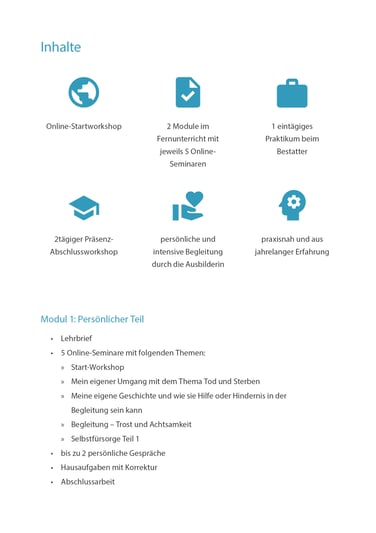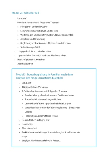 Bei selbst Betroffenen sollte das Ereignis mindestens 1 Jahr her sein und Trauerarbeit geleistet worden sein. Vor dem Start der Fortbildung gibt es bei selbst Betroffenen ein persönliches Gespräch mit der Ausbilderin, um zu erfahren, ob es schon der richtige Zeitpunkt für diese Fortbildung ist.